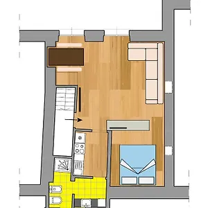 I 1 bagno della struttura sono equipaggiati con un bidet, un WC separato e una doccia, così come con un asciugacapelli, articoli da toeletta e teli da bagno.